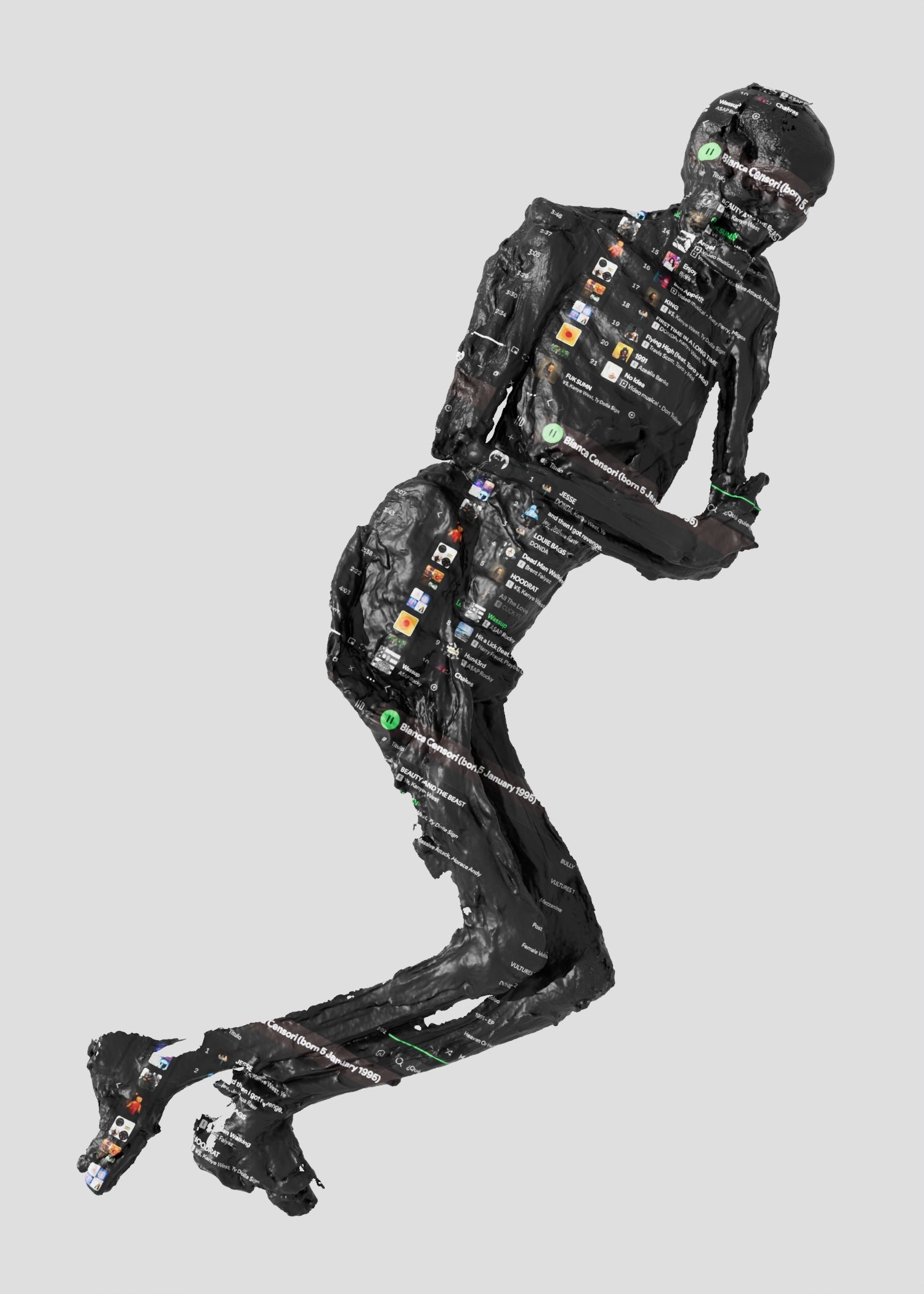 - Spotify Playlist naming Bianca Censori wrapping a 3D scan of a prehistoric mummy.