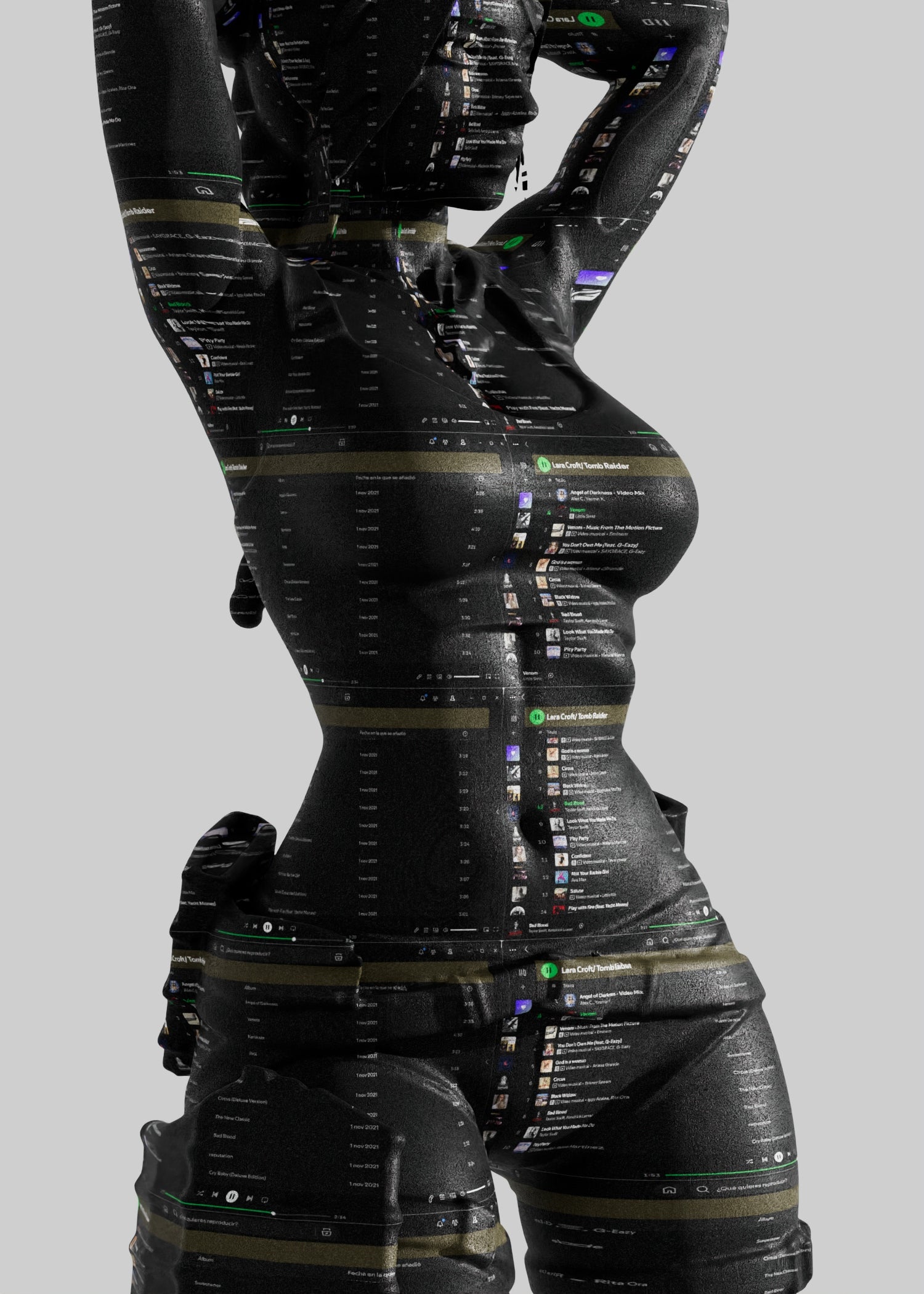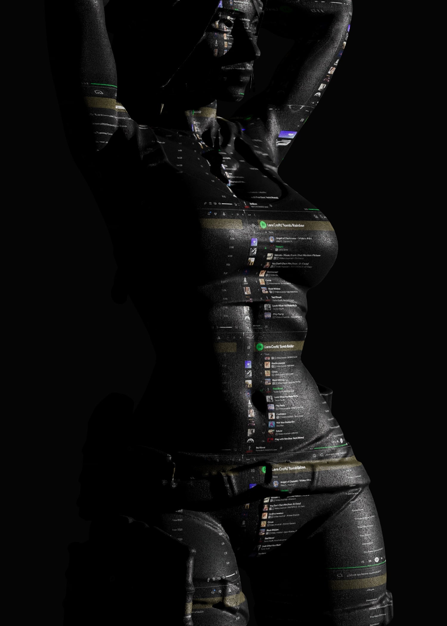 - Spotify Playlist naming Lara Croft - Tomb Rider over a 3D model of Lara Croft.