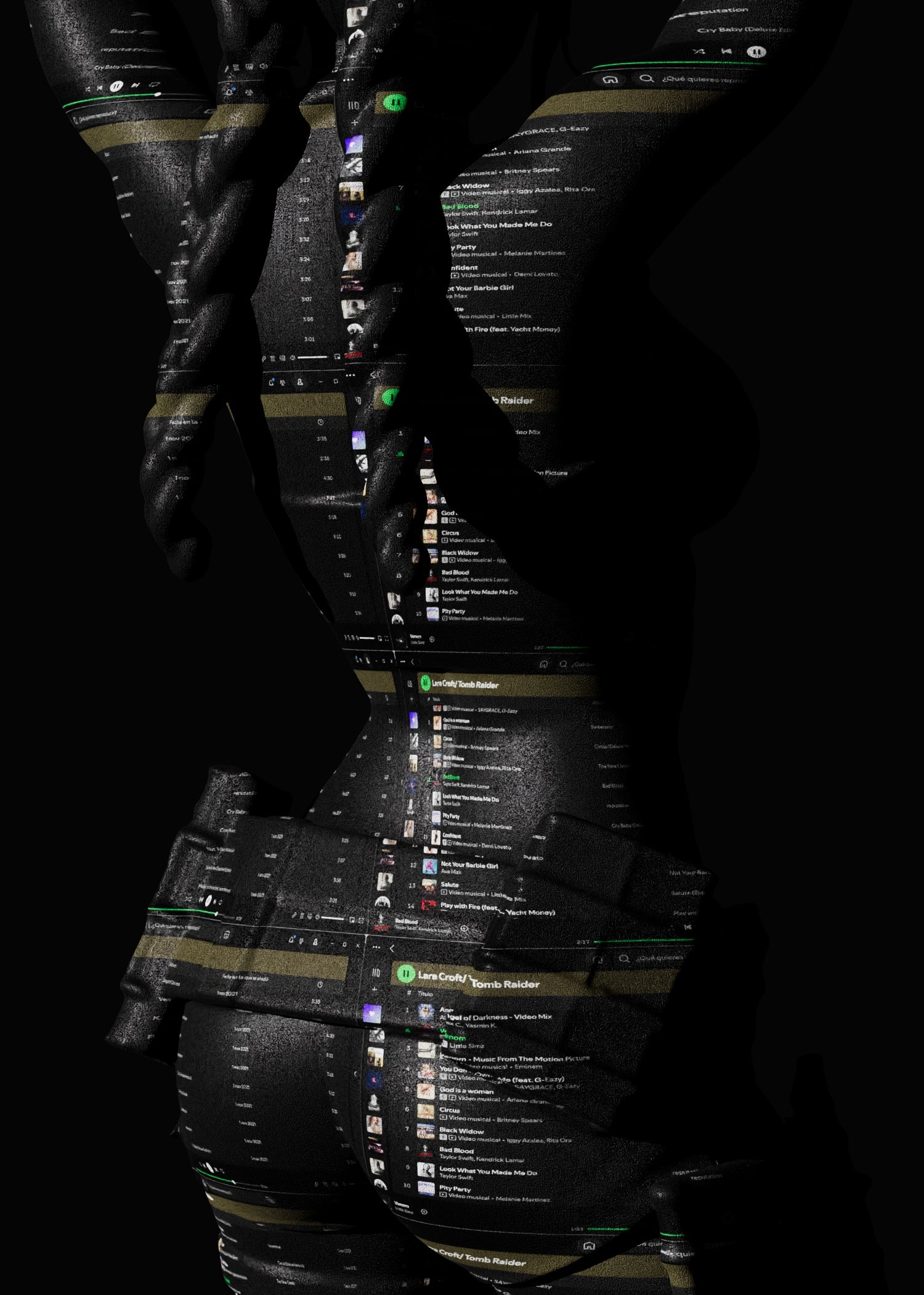 - Spotify Playlist naming Lara Croft - Tomb Rider over a 3D model of Lara Croft.